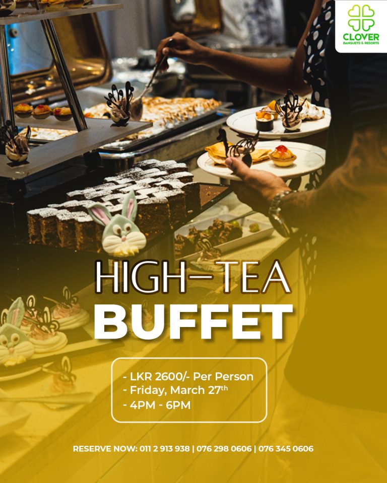 High-Tea Buffet ReservationBy Hashini Suraweera / October 29, 2023 High-Tea BuffetIndulge in a delightful afternoon tea experience!Join us for our High Tea Buffet on March 27th, from 4 PM to 6 PM.Enjoy a delectable spread of sweet and savory treats.Adults: Rs. 2600/=Kids (5-12 years): Rs. 1600/=Book your spot now ! Adults Kids
